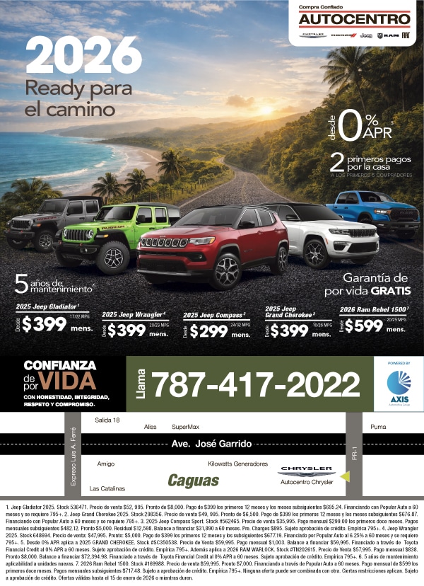 Ninguna oferta puede ser combinada con otra. Ciertas restricciones aplican. Sujeto a aprobación de crédito. Ofertas válidas hasta el 15 de enero de 2026 o mientras duren las unidades.